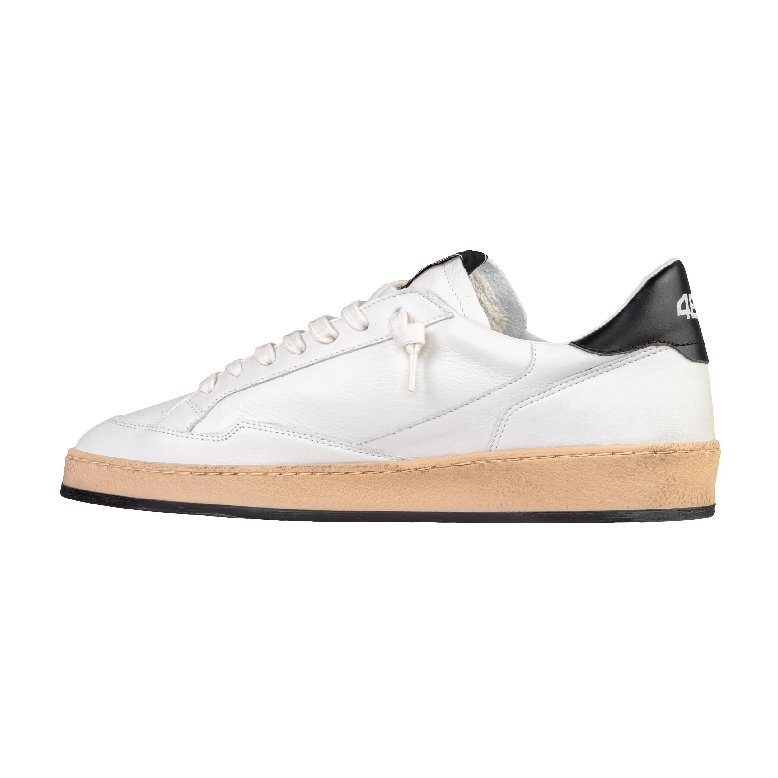La 4B12 Playnew è una sneaker dal carattere deciso che fonde l'estetica delle scarpe da basket vintage con la qualità superiore del Made in Italy. Questo modello punta tutto sulla pulizia della pelle bianca, interrotta dal dettaglio nero profondo del talloncino che dona un tocco grafico essenziale alla silhouette. È la calzatura ideale per chi cerca un prodotto versatile e di alta classe, capace di distinguersi grazie a una struttura solida e a una scelta cromatica che non passa mai di moda.