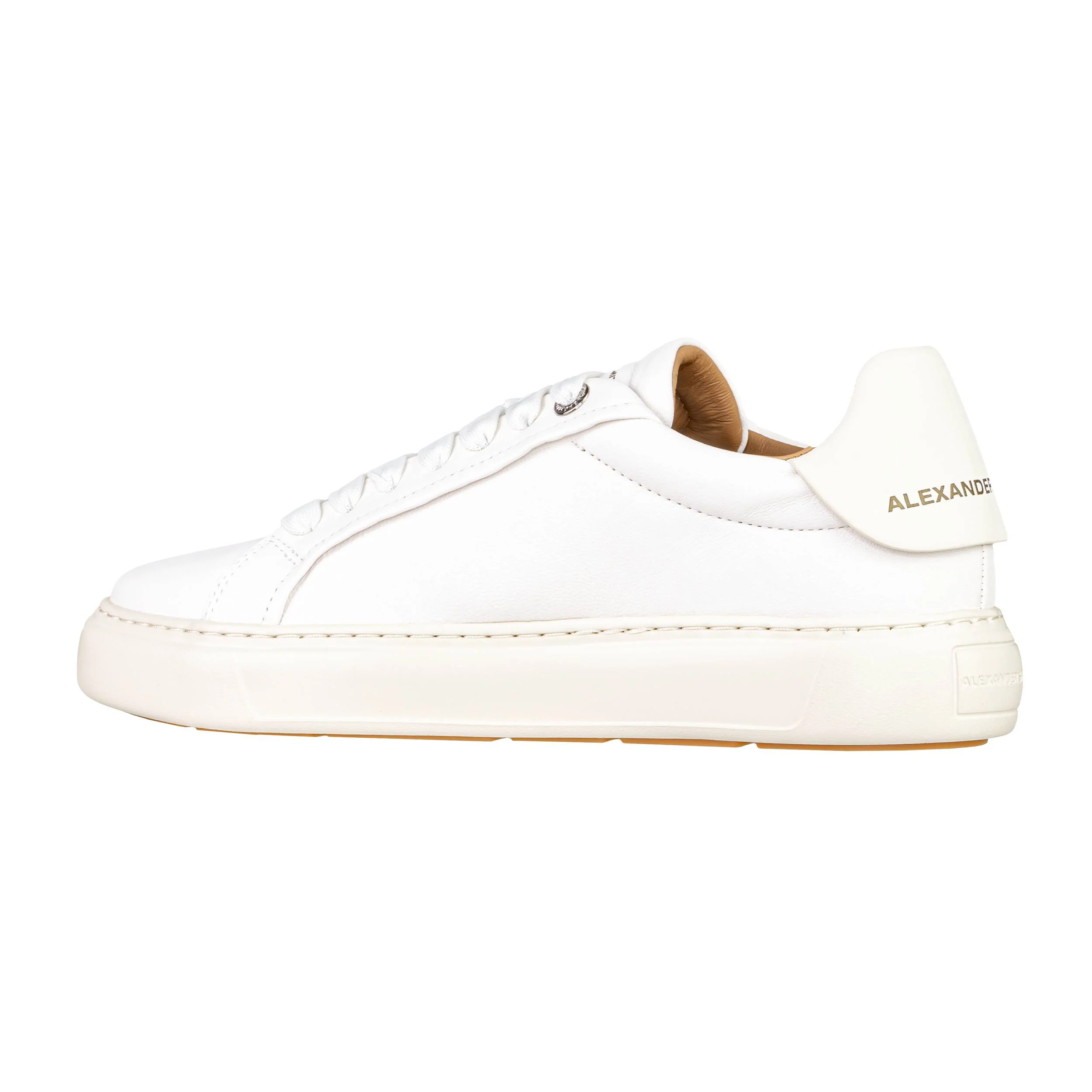 La sneaker Alexander Smith Soho Man White è l'emblema del minimalismo luxury, una calzatura capace di elevare il concetto di scarpa sportiva grazie a una costruzione impeccabile e materiali di alta qualità. La tomaia è interamente realizzata in pregiata pelle bianca, con un design essenziale e pulito che mette in risalto la silhouette moderna e i volumi strutturati della scarpa. L'estetica total white è interrotta solo dal logo laterale con l'iconica rosa metallica e dalla firma del brand sulla linguetta e sul tallone, dettagli che ne certificano l'esclusività.