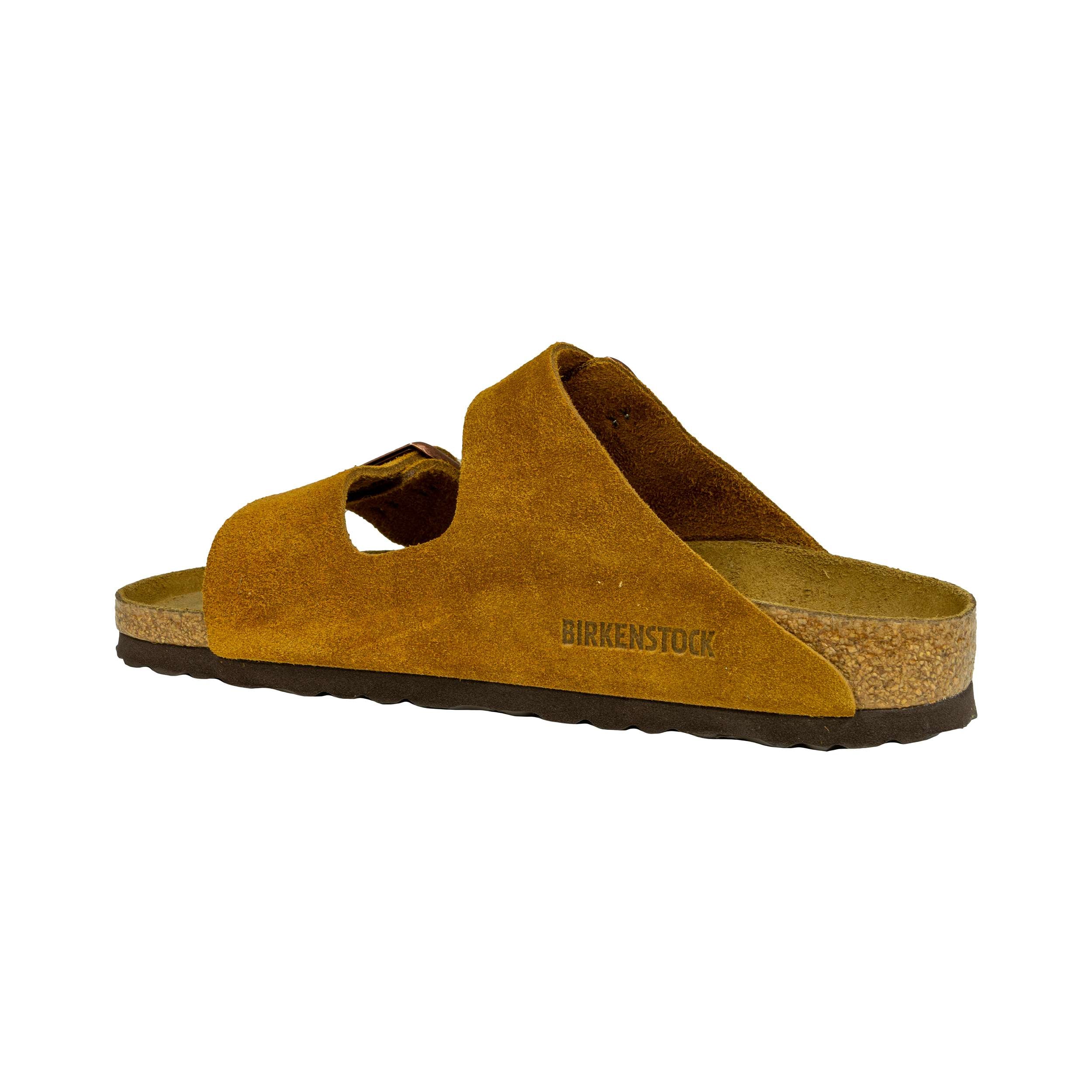 La qualità di una BIRKENSTOCK nasce prima di tutto da oltre 230 anni di esperienza, tramandati attraverso generazioni, nell'illustre arte calzaturiera. I famosi sandali tedeschi prendono l'ispirazione dalla semplice impronta lasciata dal piede sulla sabbia, un'idea tanto naturale quanto i materiali che vengono utilizzati per la sua costruzione: pellami di prima qualità, sughero, lattice naturale. Il modello Arizona nella colorazione Mink è Il classico sandalo ciabatta doppia fascia con fibbie di Birkenstock. La tomaia è in pelle scamosciata colore Tabacco. Il piede appoggia sull'innovativo plantare Soft Footbed, brevetto del brand, realizzato con un rivestimento in pelle scamosciata ed un cuscinetto in schiuma di caucciù inserito in due strati di finissima juta. La base è in leggerissima gomma Eva. Altezza tallone dal suolo: 2 cm. Calzata: Narrow Fit - per piedi magri e normali.